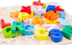 Lesena vstavljanka s črkami združuje zabavo in učenje. Vsaka črka je barvita, dobro oprijemljiva in varna za malčke, kar spodbuja samostojno igro in potrpežljivost. Idealna za prvi stik z abecedo in razvoj motoričnih spretnosti.