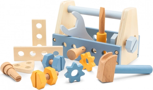 Ta brezčasni leseni komplet orodja omogoča otrokom, da se igrajo prave obrtnike. Zaradi odprtin v omarici lahko vadijo zategovanje vijakov in pritrjevanje matic, razvijajo prostorsko zaznavanje ter se učijo logičnega razmišljanja. Kakovostna izdelava in prijetni materiali zagotavljajo dolgo življenjsko dobo in varno uporabo.
