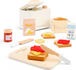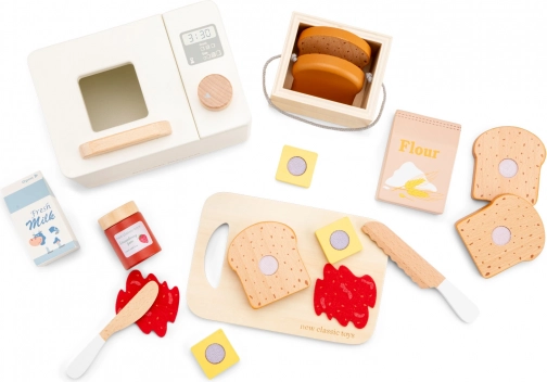 Ta stilska lesena pekarna otrokom prinaša avtentično izkušnjo peke. Vrtljiv gumb in digitalni zaslon časovnika pritegneta male peke v igro, kjer lahko »pečejo« kruh, namažejo jagodni džem ali narežejo maslo. Vse je zasnovano za varno in dolgotrajno igro.