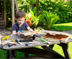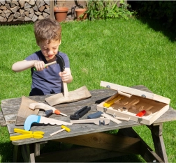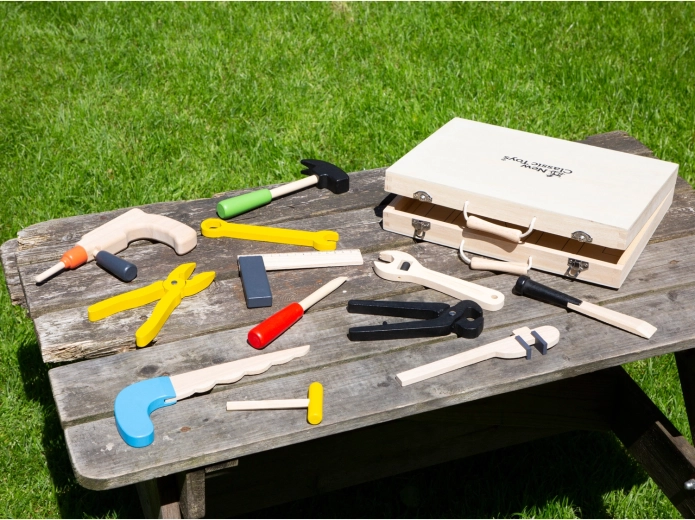 Ta lesen kovček vsebuje vse, kar vaš mali mojster potrebuje za svoje dogodivščine. Z vidika varnosti je vsako orodje zasnovano tako, da je primerno za otroke.