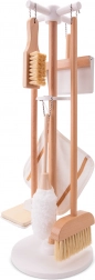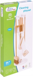 Del kompleta so mop, metla, peresnica za prah, čistilna krpa, smetišnica in smetalček. Otroci se lahko igrajo in učijo z vsemi orodji tako kot odrasli.