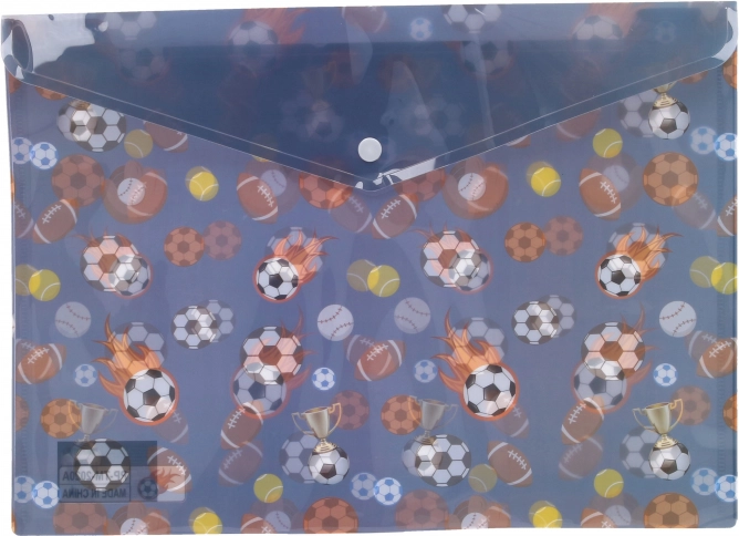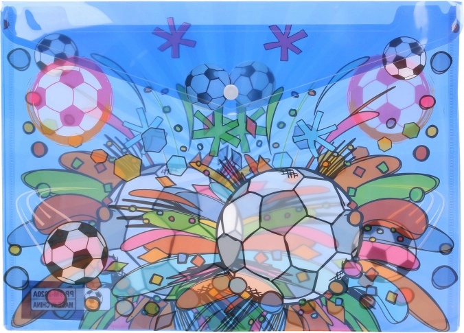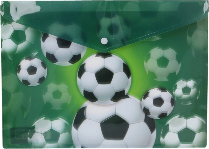 Mapa z gumbom 35,8 × 26 cm z motivom žoge. Ščiti dokumente A4 pred mečkanjem in vlago. Praktično zapiranje, trpežen material, 4 različni dizajni.