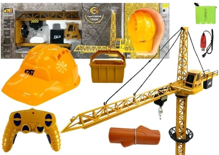 Realističen RC gradbeni žerjav, visok 128 cm, prinaša otrokom pristno gradbiščno zabavo. Ponuja dvigovanje in spuščanje tovora, premik vozička naprej in nazaj ter vrtenje nadgradnje v desno in levo. Upravljanje zagotavlja brezžični daljinski upravljalnik, napajanje glavnega dela pa polnilni akumulator z USB polnjenjem. Del paketa so tudi pribor za prevoz tovora in gradbena čelada za še bolj pristno doživetje igre.