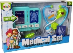 Ta popoln otroški zdravniški komplet ponuja vse, kar mali zdravnik potrebuje za skrb za svoje paciente – od plišastih medvedkov do punčk. Glavni aparat iz trpežne plastike preseneti z svetlobnimi in zvočnimi učinki (piskanje monitorja, merjenje tlaka, osvetlitev RTG), ki igri dodajo realističnost in ohranjajo pozornost otrok.