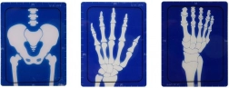 Komplet vsebuje rekvizite RTG posnetkov roke, noge in medenice. Otroci se na zabaven način učijo o človeškem okostju.