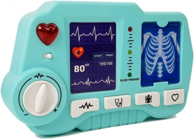 Po pritisku na gumbe se prižge dioda, zasliši se piskanje monitorja, merjenje tlaka in osvetlitev RTG. Odlično za realistično igro in navduševanje otrok.