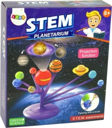 Ustvarite si majhno planetarij kar v svoji sobi. Set vsebuje vse potrebno, vključno z barvami in čopičem, da pobarvate bele planete po lastni domišljiji. Ko zložite model in namestite planete, samo ugasnite luč in občudujte dodatne funkcije kompleta. Deluje z osvetljenim Soncem, ki spravi planete v gibanje, zahvaljujoč odprtini na disku pa lahko projicirate slike planetov na steno.< /p>
