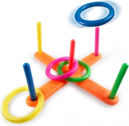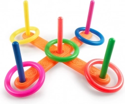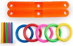 Vzdržljiva plastika z gladkimi robovi zagotavlja varno igro in dolgo življenjsko dobo. Križna osnova s stabilnimi količki in lahki obroči se preprosto sestavijo in pospravijo. Žive barve spodbujajo učenje barv, preprosto točkovanje pa motivira k novim poskusom.