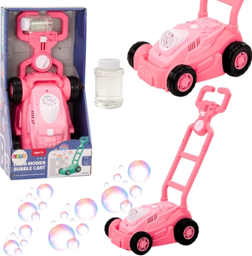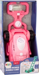 Kosilnica za travo z milnimi mehurčki v rožnatem odtenku in s posebno tekočino ustvari čudovito zunanje doživetje. Poleg estetske funkcije kosilnica otroku omogoča, da si predstavlja delo na pravem travniku, kar pričara iskren nasmeh.