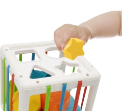 ✅ Večnamenskost: Igrača je primerna za vse otroke, ki se radi igrajo z didaktičnimi igračami. Kocka deluje kot sortirka in ropotuljica. Otroci se lahko igrajo tako, da kocko tresejo, kar ustvarja prijetne zvoke in dodatno spodbuja čute.