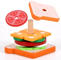 Ta barvit leseni komplet omogoča otrokom, da sestavljajo svoje »sendviče« po domišljiji ali po priloženih kartah naročil. Zahvaljujoč preprostim vizualnim navodilom otroci zlahka posnemajo recepte, se učijo razlikovati barve in oblike ter trenirajo načrtovanje korak za korakom.