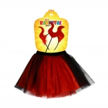 Kostum izstopa s svojim kontrastnim rdeče-črnim barvnim shematom, ki pritegne pozornost in doda čar otroški domišljiji.