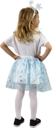 Ta čudovit otroški kostum v modri barvi s snežnimi motivi je odlična izbira za praznovanja in preobleke. Zasnovan je tako, da je udoben za nošenje in na vsaki deklici izgleda čudovito.
