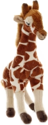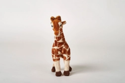 Ta nežna plišasta žirafa navduši z mehkim materialom in prijaznim videzom. Zaradi kompaktne višine 28 cm se zlahka prilega v voziček, posteljico ali nahrbtnik, zato razveseljuje doma in na poti.