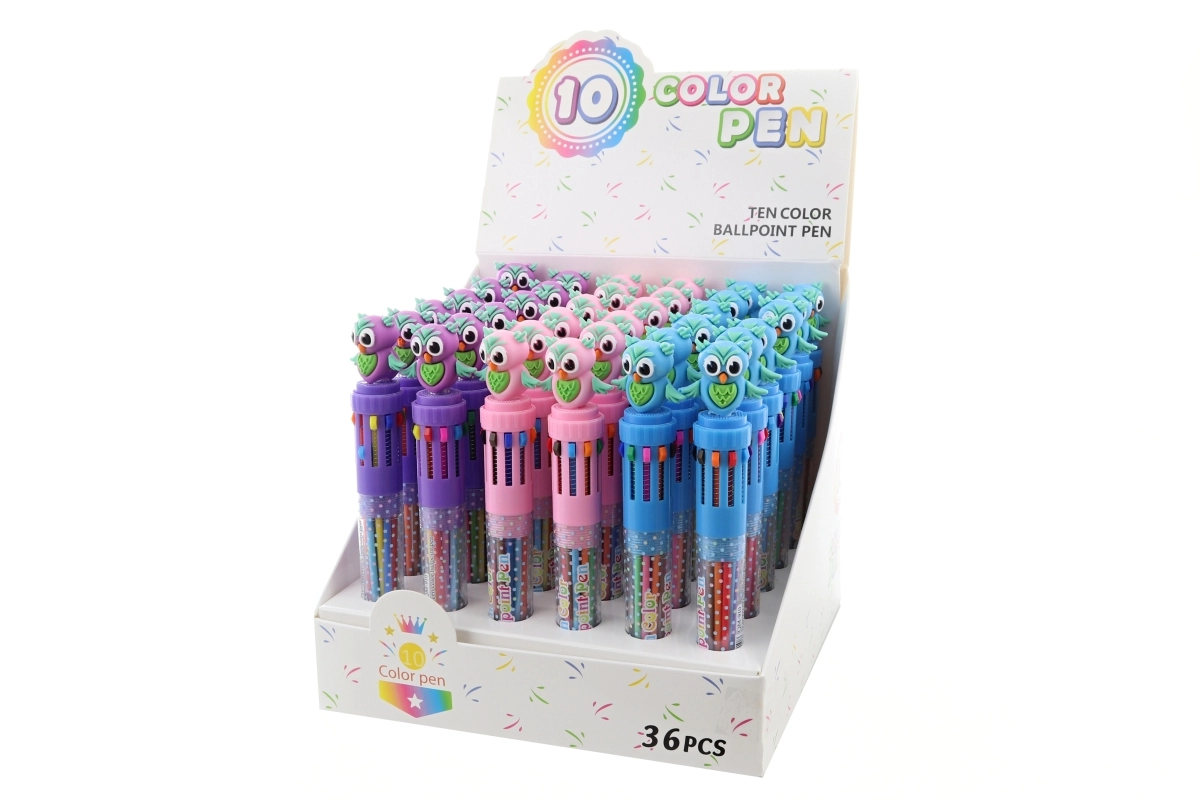10-barvno kemično pisalo z motivom sovic. Velikost pisala približno 12,5 cm (s sovico približno 15 cm). Izdelek ni igrača.