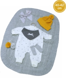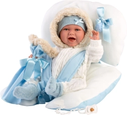 Dobavljena je brez oblačil, kar ustvarja prostor za dokup in kombinacijo z originalnimi oblačili Llorens iz ponudbe za velikosti 40-42 cm ali 43-45 cm. Vključuje dude, ki služi kot prisrčen dodatek, in 3 gumijaste baterije LR44, ki zagotavljajo dolge ure igranja.