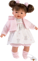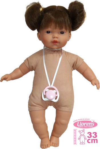Funkcionalnost: Ko odstranite dudo iz ust, punčka reče "mama", "papa" in oddaja realističen zvok jokajočega otroka. Te zvoke lahko utišate z magnetno dudico. Model ne vključuje oblačil; priporočamo nakup originalnih Llorens oblačil za velikost 33 cm.