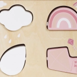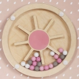 • Lesena konstrukcija: Stabilna in estetska, izdelana iz varnih materialov, pobarvana v nežnih pastelnih barvah, ki igrački dodajajo eleganten videz in so prijazne do otroka.