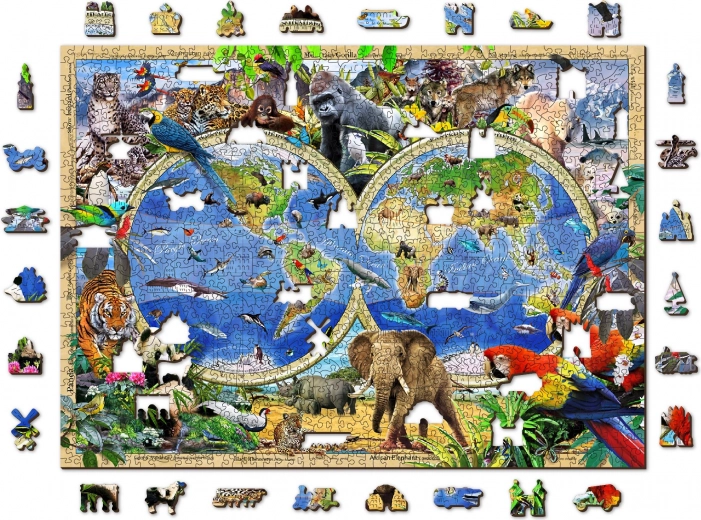 Odkrijte svet z edinstveno leseno sestavljanko WOODEN CITY z motivom zemljevida sveta in živali. Zahvaljujoč z laserjem izrezanim koščkom in posebnim oblikam živali je sestavljanje zabavno in hkrati zahtevno. Sestavljanka ima gladke robove, je okolju prijazna brez plastike in vsebuje predlogo za lažje sestavljanje.