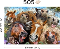 Na eni strani barvit motiv konj, na drugi ponavljajoč se vzorec za sestavljanje po oblikah. Dvojna zabava in večja raznolikost.