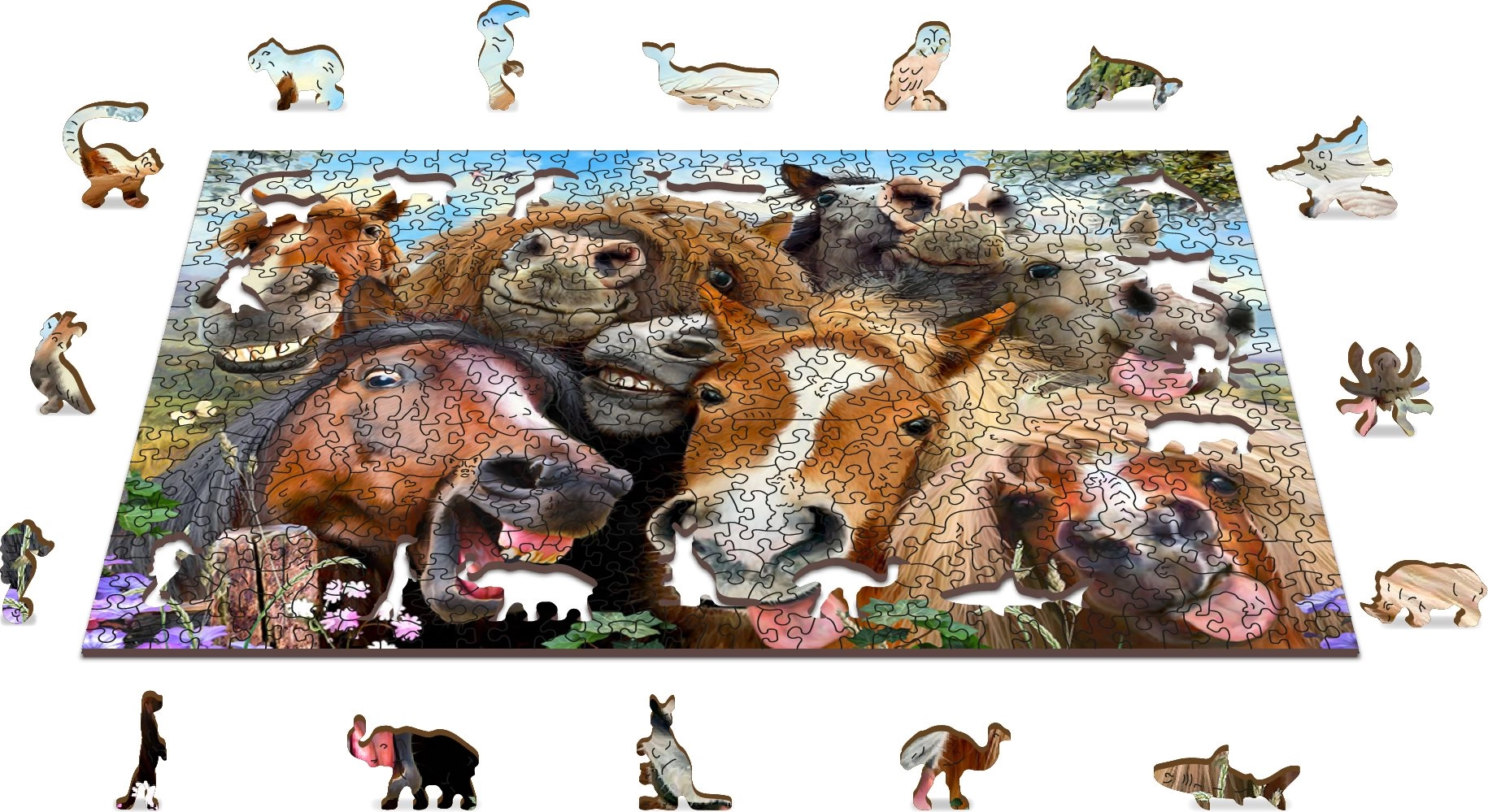 Odkrijte zabavo in izziv v enem z leseno sestavljanko WOODEN CITY z motivom konj. Zahvaljujoč lasersko izrezanim, unikatno oblikovanim koščkom v oblikah živali in predmetov vas čaka višja zahtevnost in privlačno sestavljanje. Sestavljanka je dvostranska 2v1, ima gladke robove in je eko prijazna, brez plastike.