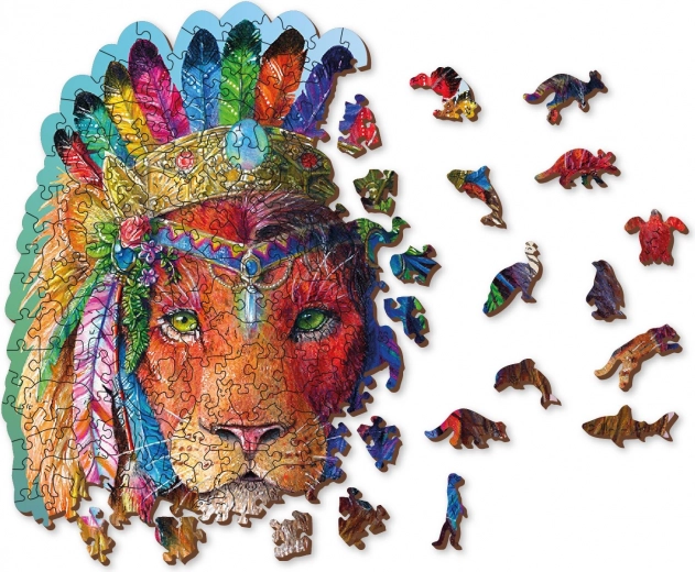 Odkrijte impresivne lesene sestavljanke z motivom mističnega leva z bogatim okrasjem in pisanim detajlom. Edinstveno oblikovani koščki, vključno z živalskimi silhuetami, spremenijo sestavljanje v kreativno in napeto zabavo. Zaradi lasersko poudarjenih detajlov in popolnoma gladkih robov je sestavljanje prijetno, končna slika pa deluje kot umetniško delo, primerno tudi za dekoracijo interierja.