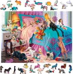 Lesena sestavljanka WOODEN CITY Nagajivi mladički prinaša zabavo za otroke in odrasle. Izvirno oblikovanje koščkov v silhuete živali, zgradb in predmetov daje sestavljanju nov razsežnostni učinek, nekatere kose pa lahko uporabite tudi kot majhne samostojne figurice. Zahvaljujoč z laserskim rezom poudarjenim detajlom izstopata motiv in kakovost izdelave.
