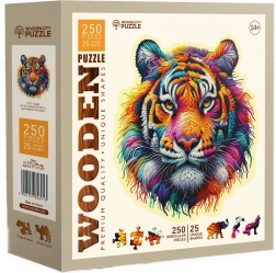 Lesene puzzle Nežni tiger ponujajo nevsakdanjo izkušnjo sestavljanja. Čakajo vas posebej oblikovani koščki, od katerih so nekateri v obliki živali, z lasersko poudarjenimi detajli, zato delujejo kot majhne samostojne figurice. Višja zahtevnost in manjše število koščkov predstavljata zanimiv izziv za odrasle in starejše otroke.