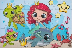 Odkrijte čar podvodnega sveta s čudovitim motivom morske deklice. Sestavljanka z 30 velikimi kosi spodbuja fino motoriko, potrpežljivost in logično razmišljanje otrok. Zaradi večjih kosov je odlična za mlajše otroke, ki bodo uživali ob dokončani sliki velikosti 29 × 18 cm.