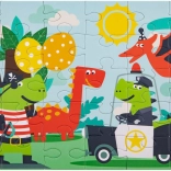 Odkrijte zabavno otroško sestavljanko z motivom dinozavrov – vsebuje 30 velikih kosov, po sestavljanju nastane slika velikosti 29 × 18 cm. Idealno za razvoj fine motorike in potrpežljivosti, zapakirano v lepo darilno škatlo z ročajem za enostavno prenašanje.