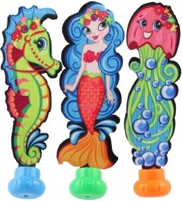 Lahke igrače se po metu v vodo gladko potapljajo in drsijo, zato otroke motivirajo k lovljenju in vadbi potapljanja. Odlična aktivnost za poletne dni ob vodi.