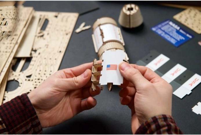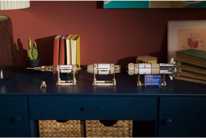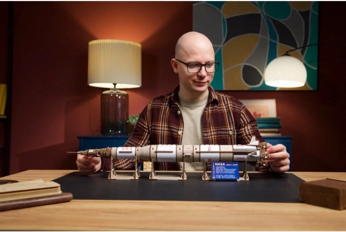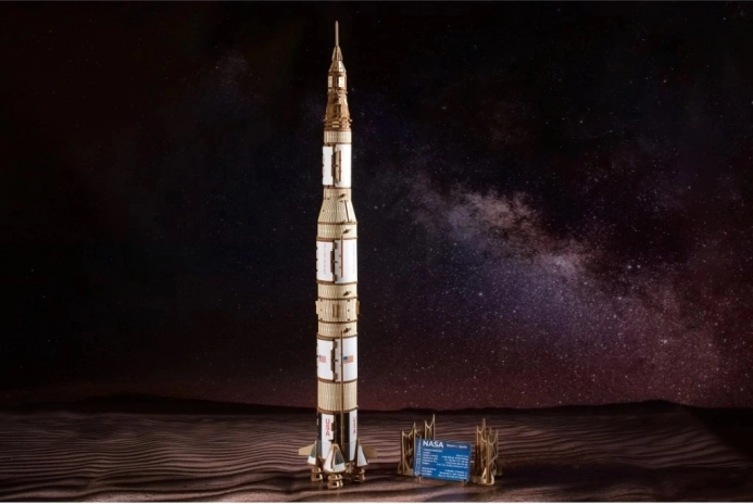 Model je izdelan iz kakovostnega, okolju prijaznega lesa z natančno predrezanimi deli za sestavljanje brez lepila. Zahvaljujoč podrobnim navodilom ga obvladajo tudi spretni začetniki, medtem ko bodo izkušeni modelarji cenili tehnično dovršenost, mehanske elemente in dodelane detajle, vključno z lunarnim modulom.