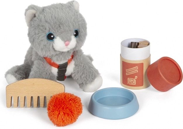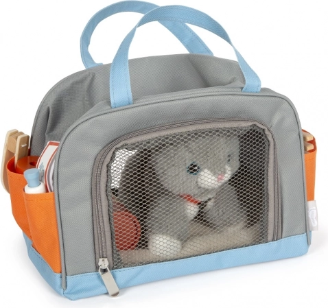 Ta bogato opremljen komplet prinaša vse, kar otroci potrebujejo za skrb za svojega plišastega kosmatinca. Mucka z oprsnico lahko potuje v udobni transportni torbi s podlogo, otroci pa imajo vedno pri roki pripomočke za hranjenje, nego in crkljanje. Igra malega veterinarja zabavno razvija empatijo in odgovornost.