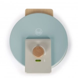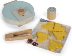 S tem igralnim kompletom za peko vafljev bodo mali kuharji naenkrat pripravili do pet vafljev v obliki srca. Tekstilni »vaflji« so na sredini povezani z ježkom in izgledajo kot pravi. Vrtljivo stikalo z indikatorjem, ki se spremeni iz rdeče v zeleno, daje igri realističen pridih – otroci takoj vedo, kdaj so vaflji »gotovi«.