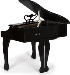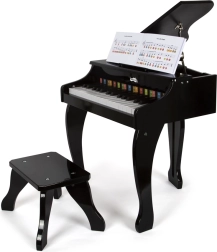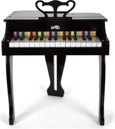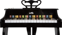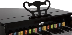 Komplet vključuje stabilen stolček, stojalo za note in pesmarico – otrok lahko takoj začne odkrivati svet melodij. Klavir je zasnovan kot igrača za zabavno učenje in igrivo motivacijo, ne kot polnovreden glasbeni instrument.