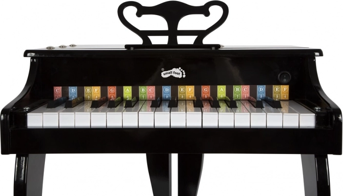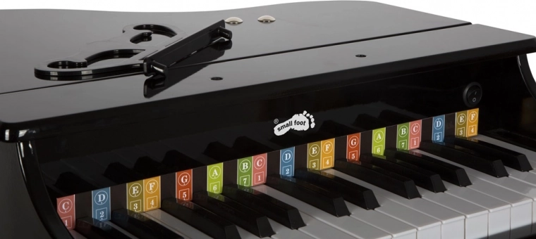 Elegantno otroško klavirsko krilo SMALL FOOT iz kakovostnega lesa prinaša otrokom veselje do glasbe. Ima luksuzen dizajn, odlično kakovost zvoka in odpirajoči pokrov kot pri pravem krilu. Priloženi so stolček, stojalo za note in pesmarica z barvno označenimi notami ter tipkami za lažje učenje. Napajanje z 4× AA baterijami (niso priložene).