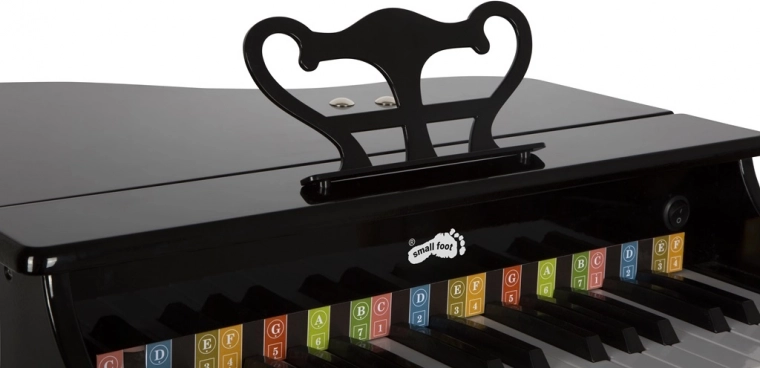Privoščite malemu glasbeniku njegovo prvo »veliko« klavirjevo krilo. Leseno otroško klavirsko krilo SMALL FOOT navduši z realističnim videzom z odpirajočim pokrovom in trdno konstrukcijo. Barvno označene tipke ter pesmarica z barvnimi notami olajšajo prve korake pri igranju in razvijajo ritem, zbranost ter fino motoriko.