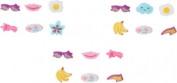 Set dekorativnih priponk (očala, rože, zvezde idr.) omogoča edinstven videz pri vsaki igri.