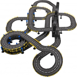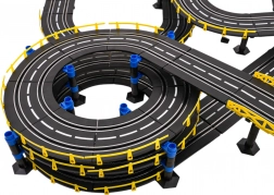 . | Velika dirkalna steza v merilu 1:43 z dvema daljinsko vodenima avtomobilčkoma za otroke od 3 let naprej. Posamezni gradbeni elementi omogočajo postavitev steze z ostrimi zavoji, spiralami in ravninami, vse za največjo zabavo in večje vznemirjenje med igro. Ta edinstven komplet je idealna igrača za male navdušence nad avtomobilskimi dirkami. Steza je opremljena s števcem krogov. Napajanje z električnim tokom 220 V - 50 Hz. |