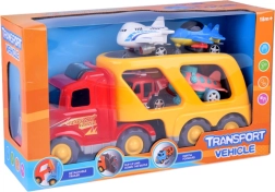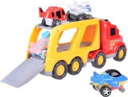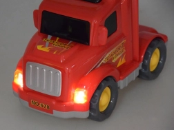 Ta veliki otroški vlačilec s prikolico je idealen za male voznike in pilote. Zahvaljujoč frikcijskemu pogonu je dovolj, da igračo potisnete po gladki površini in se bo zapeljala. Na strehi kabine je gumb, ki aktivira realistične zvoke motorja, hupe in svetlobne učinke, zato je igra še zabavnejša.