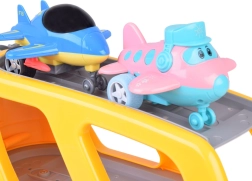 Del seta so tri letala in helikopter, ki jih je mogoče zlahka naložiti s pomočjo preklopne rampe. Robustna plastična izvedba v živih barvah je varna in odporna za vsakodnevno igranje.