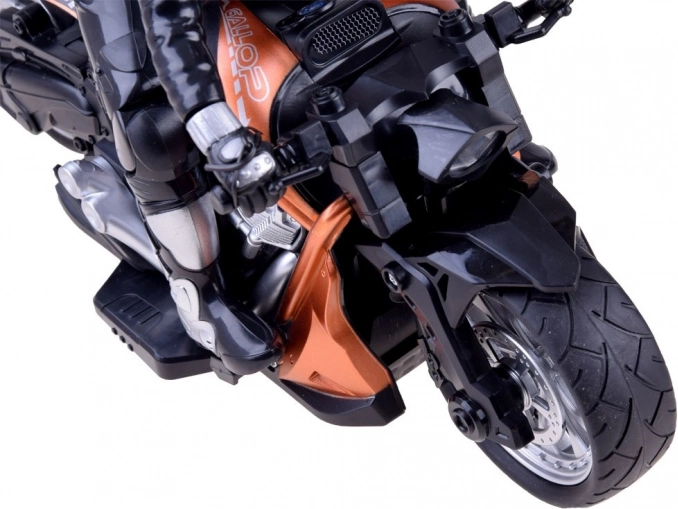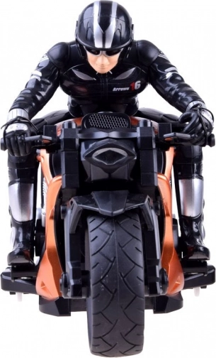 Športni motor na daljinsko upravljanje z voznikom bo zagotovo razveselil vsakega malega oboževalca športnih dragsterjev. Novi, preplonjeni športni motocikl je bil realistično oblikovan, kar prinaša veselje na obraz navdušencev teh vozil. Motor ima vse dele iz plastike, ročke pa so zelo skrbno in estetsko izvedene.