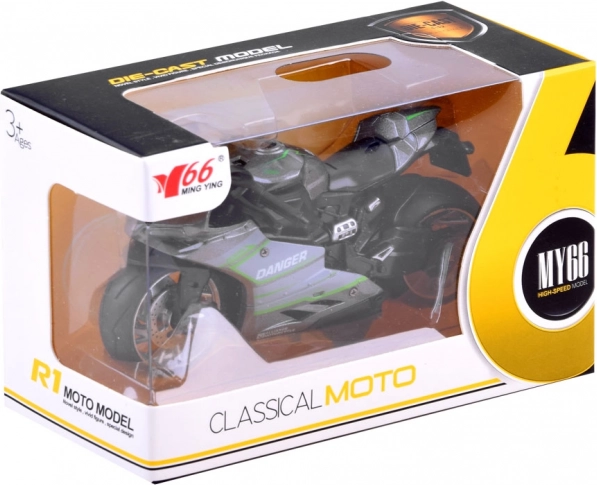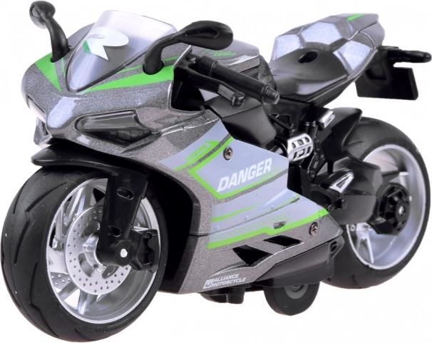 kovinski športni motocikel s svetlobnimi in zvočnimi učinki 1:12, sivi
