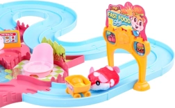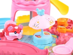 Ta razširjeni igralni set spremeni otroško sobo v pisan zabaviščni park. Proga s stolpom, toboganom in vrtljivim menijem pri fast food stojnicI vabi k ustvarjalni igri ter razvija fino motoriko in domišljijo. Interaktivni hrček se po vklopu požene in raziskuje traso, polno ovir in tematskih dodatkov.