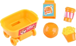 Paket vsebuje vse za takojšnjo zabavo: figurico hrčka, stolp, tobogan, znake in table, sedišča, blagajno, nakupovalni voziček ter prikupne dodatke, kot so pomfri, hamburger in pijača. Zaradi živahnih barv in interaktivnih elementov je to idealno darilo za otroke, ki imajo radi akcijske in igre vlog.