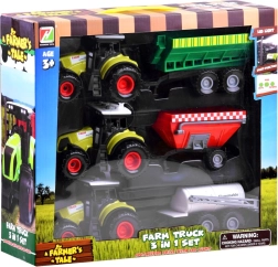 Set vsebuje 3 traktorje in 3 različne prikolice. Otroci lahko prikolice zlahka priklapljajo in odklapljajo ter ustvarjajo lastne sestave za raznoliko kmečko zabavo.