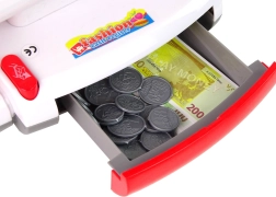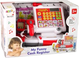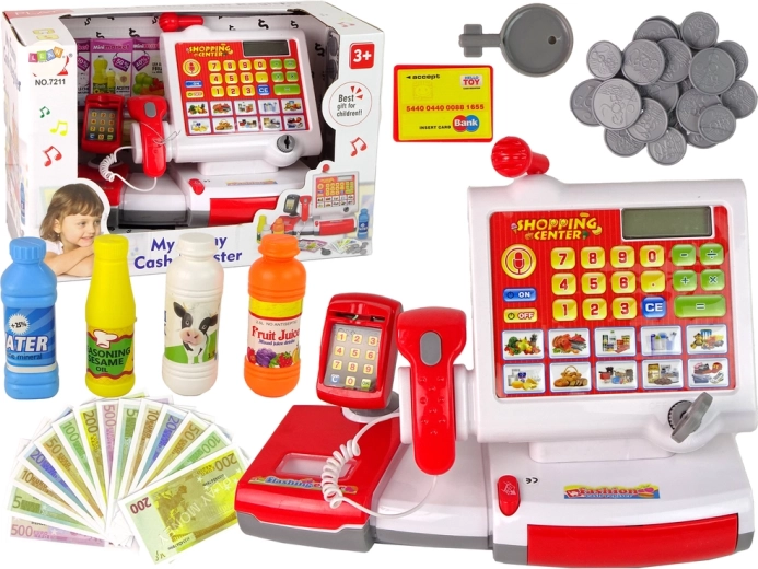 Po zaslugi delujočega kalkulatorja in predala za denar blagajna pri igri na trgovino spominja na pravo blagajno.