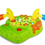 Igralni komplet vsebuje zeleno-rjavo plastično ploščo z barvnimi glavami živali in dve kladivci, kar omogoča sočasno igro dveh igralcev. Barvita grafika živali in rastlin na plošči bo navdušila vsakega otroka, ki mu ta igra nikoli ne bo dolgočasna. Otroci se ne bodo le zabavali, temveč si bodo tudi pridobili nove spretnosti, kot so prepoznavanje barv in zvokov.