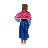 Otroški kostum princese, navdihnjen z priljubljenim pravljičnim svetom, popestri vsako pustovanje, rojstnodnevno zabavo ali domače preoblačenje. Zgornji del krasijo nežen potisk in elegantni detajli, krilo v modrem tonu lepo pada, rožnat plašč pa doda opravi čaroben pridih.