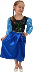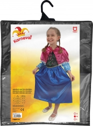 Ta dekliški kostum vsako malo navihanko spremeni v princeso iz zimskega kraljestva. Bleščeče modro krilo in črn životec z nežnim potiskom ustvarjata eleganten videz, ki izstopa na pustovanju, rojstnodnevni zabavi ali pri domačih preoblekah.